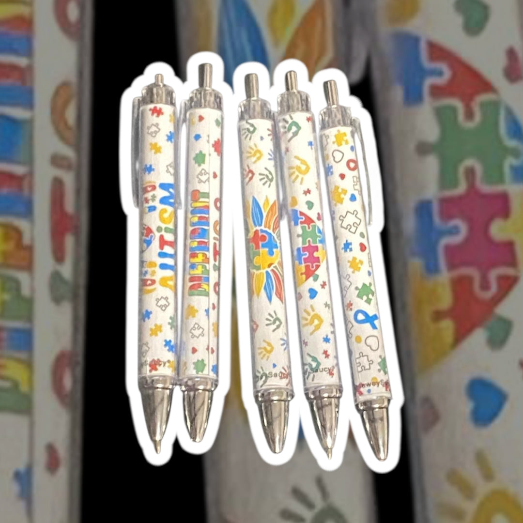 “Bolígrafos solidarios con un diseño único y lleno de color, creados para dar visibilidad al autismo y apoyar las terapias de Irene. Cada trazo que escribas con ellos será un recordatorio de que juntos podemos sumar sonrisas y esperanza. 💙”